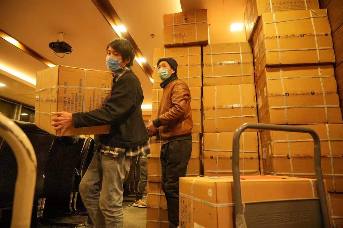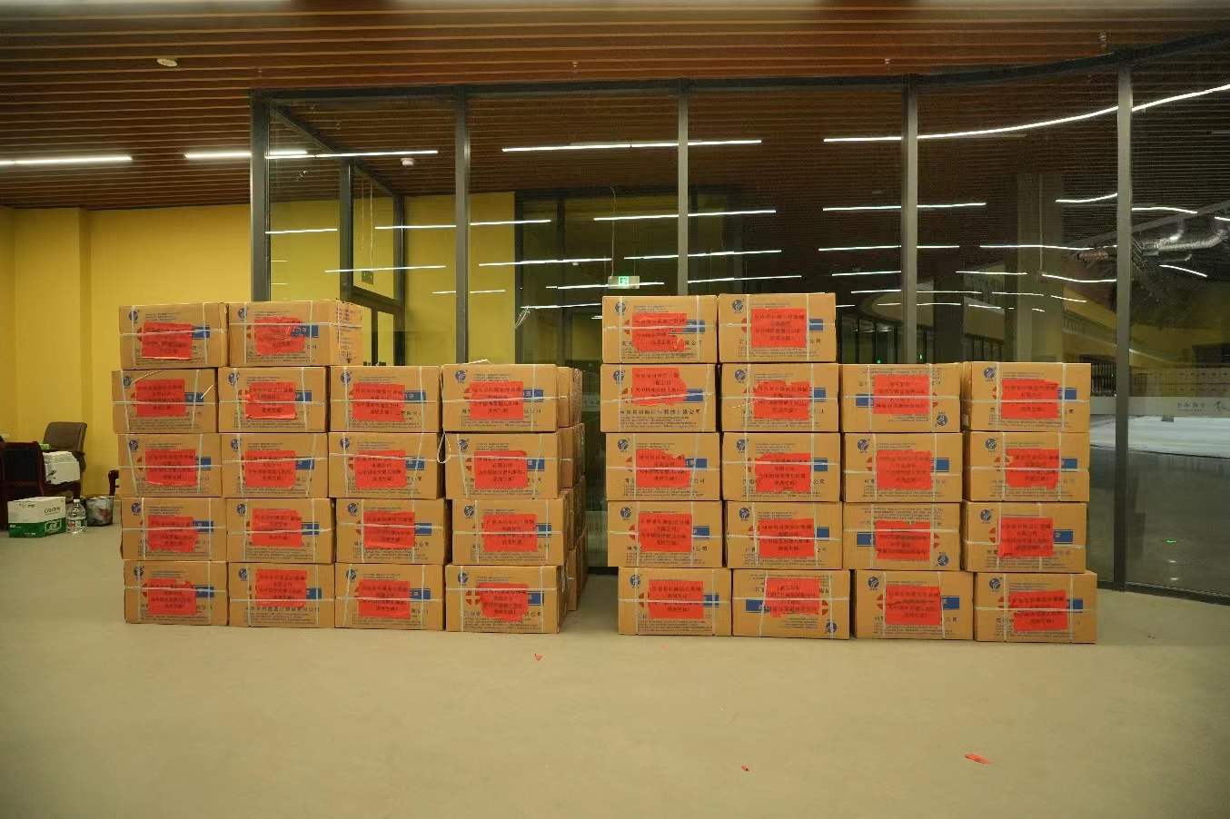經(jīng)過檢驗檢測后的定制口罩裝箱,連夜送到北京的中國冰雪APP的庫房,經(jīng)過工作人員清點無誤后,組織專人將20萬只口罩運送到北京冬奧會賽場的物資集結地。
